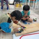 コーディング用のブロックの役割を覚えた子どもは、ロボットに思い通りの動きをさせるために、ブロックの組み合わせを工夫するようになります。