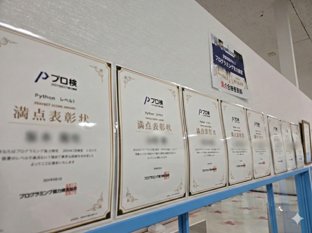 当校では、多くの子どもたちが「プログラミング能力検定」に合格しています。プログラミング能力検定は、論理的思考力や問題解決力を段階的に測定する全国的な資格で、学習の成果を客観的に確認できる点が大きな特徴です。合格することで自信が育まれ、次の学習意欲にもつながります。また、将来のIT学習や受験でのアピール材料としても役立つため、子どもたちの成長をしっかり後押しする指標となっています。