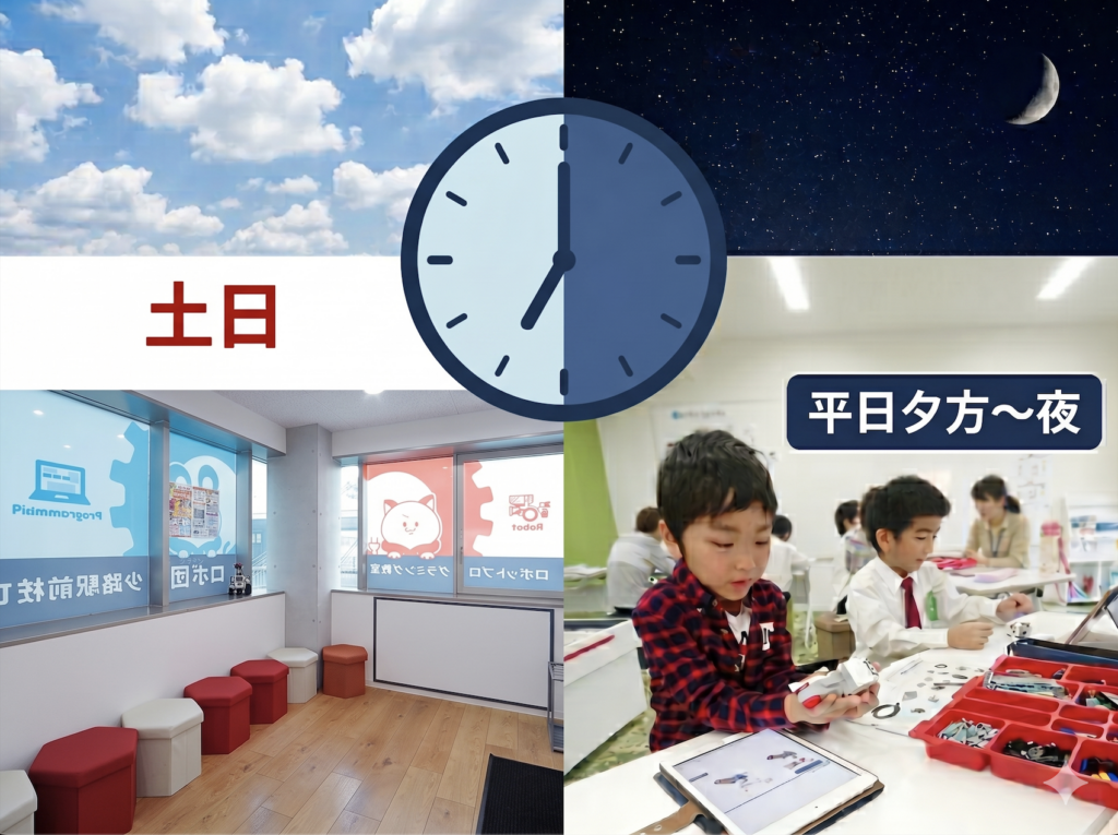 土日クラス・平日夕方〜夜クラスが充実し、お仕事帰りの送迎でも間に合います。