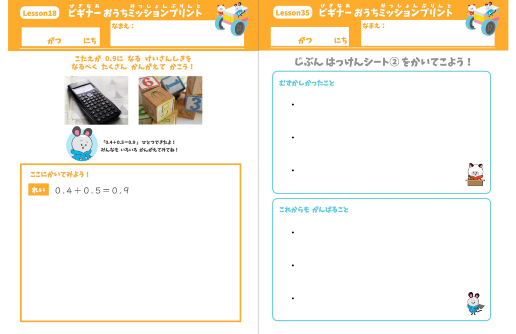 ロボット制作を通して視覚の数値感覚を学んだり、考えを伝える練習を行ない、進級後のビギナークラスへ向けた準備を行います。