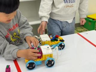 ロボット制作を通して視覚の数値感覚を学んだり、考えを伝える練習を行ない、進級後のビギナークラスへ向けた準備を行います。